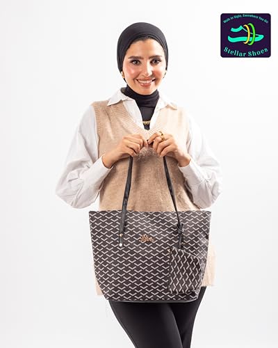 Generic - Stellar حقيبة يد نسائية ، تصميم هندسي أنيق، حقيبة كتف واسعة مع محفظة صغيرة، مناسبة للاستخدام اليومي والسفر والتسوق، تصميم عصري متين وراقي لون أسود