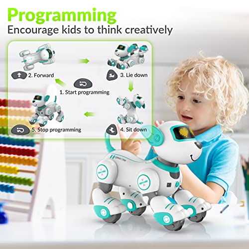 - لعبة تفاعلية قابلة للبرمجة: مع هذا الكلب الآلي التفاعلي الذكي، يمكن لأطفالك إطلاق العنان لخيالهم وإبداعهم من خلال برمجة اللعبة لأداء حركات مختلفة مثل التحرك للأمام والخلف واليسار واليمين وحتى متابعتها. سوف يستجيب الكلب الآلي بصوت وحركات، تمامًا مثل الكلب الحقيقي.