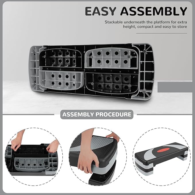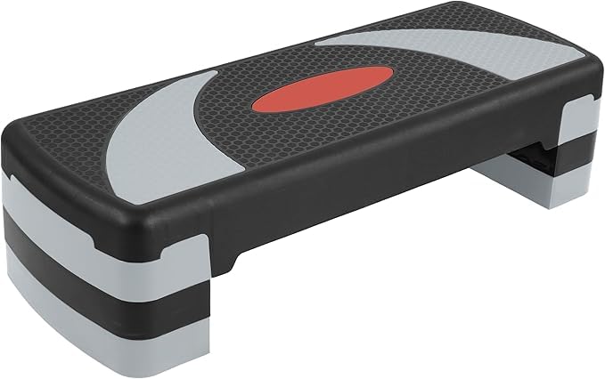 Generic - منصة تمارين رياضية 31 انش مع 3 مستويات ارتفاع قابلة للتعديل، 4 رافعات قابلة للتكديس، لتمارين اللياقة البدنية وصالة الالعاب الرياضية المنزلية، قوة القلب، اسود ورمادي