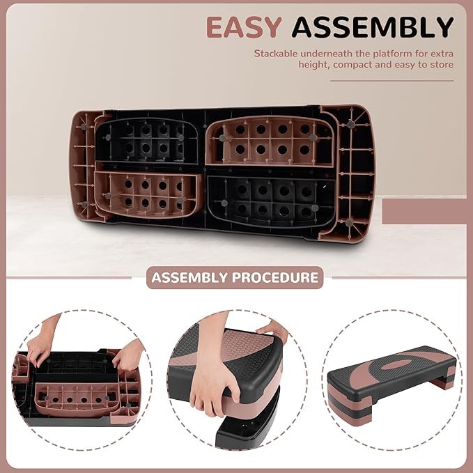 Generic - منصة تمارين رياضية 31 انش مع 3 مستويات ارتفاع قابلة للتعديل، 4 رافعات قابلة للتكديس، لتمارين اللياقة البدنية وصالة الالعاب الرياضية المنزلية، قوة القلب، اسود وزهري
