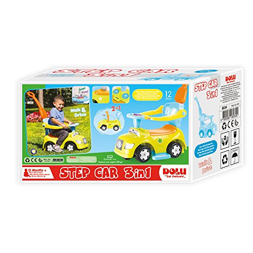 DOLU - سيارة ستيب 3 في 1 مع بوستر برسوم كرتونية للمساعدة على المشي والقيادة