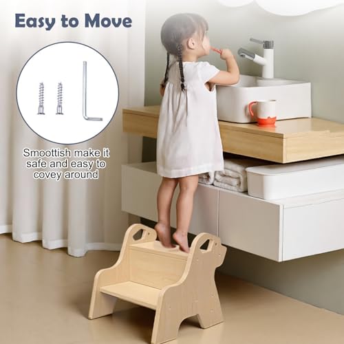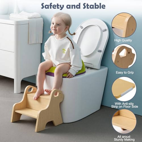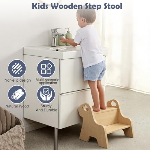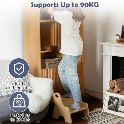 SciFiVisi - مقعد درج للاطفال - مقعد من طبقتين مع بساط ومقبض مانع للانزلاق، مقعد خشبي متعدد الوظائف للحمام والمطبخ وغرفة الاطفال والاطفال والبالغين وكبار السن