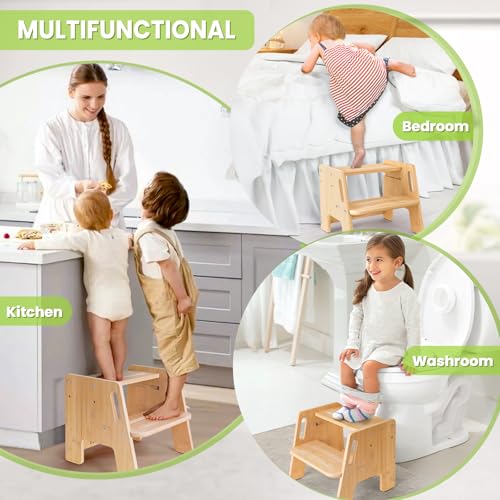 - 【مناسب لكل منزل وطفل】يُعد كرسي الحمام الصغير المكون من درجتين إضافة عملية لأي منزل، فهو يعزز الاستقلالية بأسلوب مونتيسوري مما يجعله هدية مثالية للأطفال الصغار.