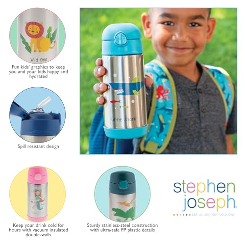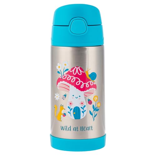 Stephen Joseph - زجاجة مياه بطبقة عزل حراري من الفولاذ مقاوم للصدأ بشفاطة، خالية من مادة بيسفينول أ للأطفال، بتصميم ماشروم من ستيفن جوزيف، 349 مل