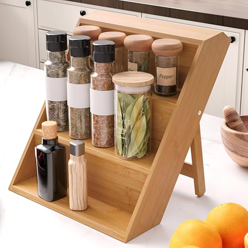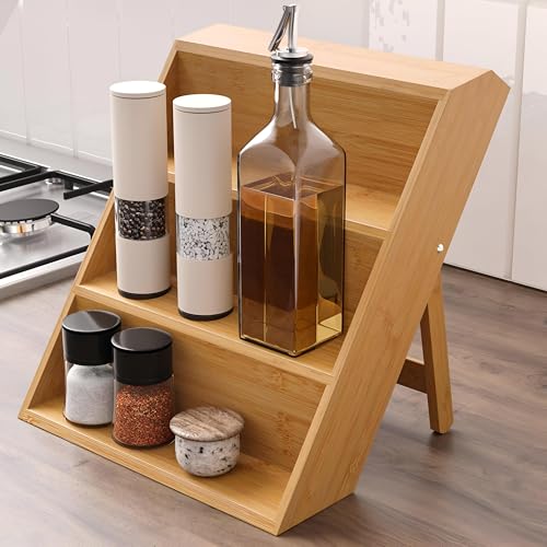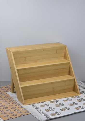 Generic - رف عرض متدرج - مصنوع من الخشب الطبيعي، هذا المنظم ذو اللون الأصفر المكون من 4 طبقات يرفع مساحة التخزين بأناقة عملية لغرف المعيشة أو الرفوف.