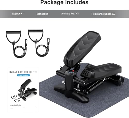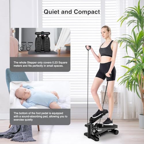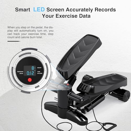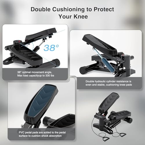 Bubbacare - جهاز ستيبر صغير للمنزل، 150 كجم مع شاشة LCD، خطوة متارجحة هادئة من الاعلى لاسفل مع حبال طاقة، لتدريب الارداف والقلب، درج درج لوزارة الداخلية واللياقة البدنية المنزلية