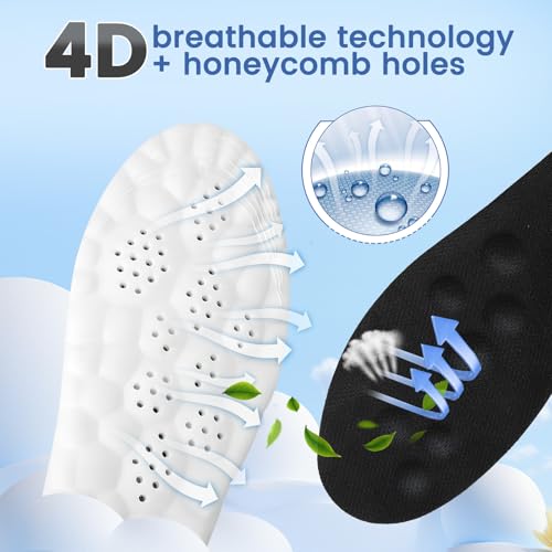 - تقنية متطورة رباعية الأبعاد جيدة التهوية: تقنية متطورة رباعية الأبعاد جيدة التهوية وتصميم فريد من نوعه على شكل قرص العسل يعزز دوران الهواء. القماش سريع الجفاف مع فتحات جيدة التهوية يمتص العرق بشكل فعال ويمنع الرائحة، مما يضمن بقاء قدميك جافة طوال اليوم. مريح حتى أثناء النشاط المكثف.