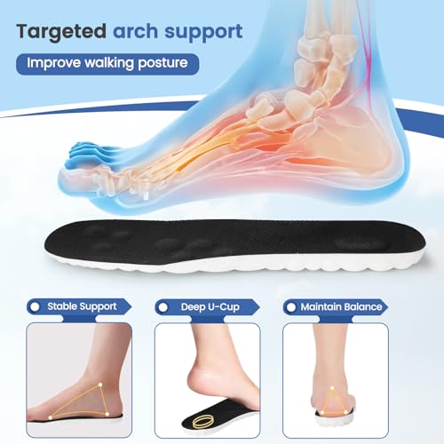 CJOWYB - نعال داخلية مريحة رباعية الابعاد للرجال من ستيبرز، مصنوعة من مادة الميموري فوم سهلة التشذيب لتناسب قدمك، ودعم قوس القدم يخفف التعب ويقلل من آلام القدم (مقاس 41 - 44.5)