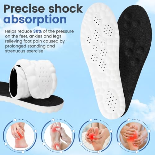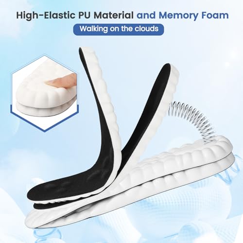 - راحة تشبه السحابة: النعال الداخلية الخاصة بنا مصنوعة من رغوة الذاكرة ومادة البولي يوريثان عالية المرونة لراحة لا مثيل لها. تمتص وسادة الكعب السميكة الصدمات وتقلل الضغط على قدميك وساقيك بشكل فعال، مما يسمح لك بالوقوف والجري لفترات طويلة بسهولة. تبدو كل خطوة وكأنها تخطو على سحابة.