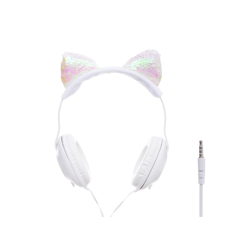 Generic - سماعة راس ستيريو تحتوي على ميكروفون مرتفع الوضوح مصمم بتصميم قطة لطيفة وتتضمن كابل ايه يو اكس 3.5 ملم للبنات - لون أبيض