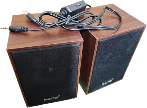 Generic - مكبر صوت ستريو للكمبيوتر واللاب توب، USB و AUX 3.5، تصميم خشبي كلاسيكي