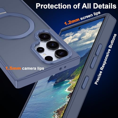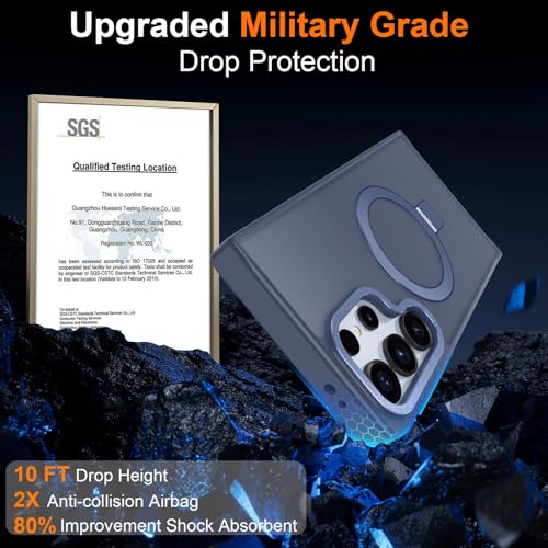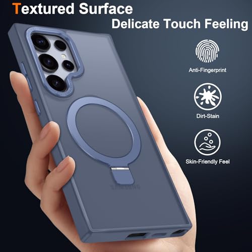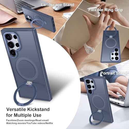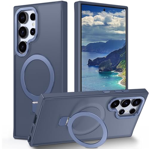 Sterker - ستيركر حافظة مغناطيسية بحامل حلقي لموبايل سامسونج جالاكسي S25 الترا مع مسند وحماية من السقوط من الدرجة العسكرية، حافظة رفيعة شفافة غير لامعة، ازرق