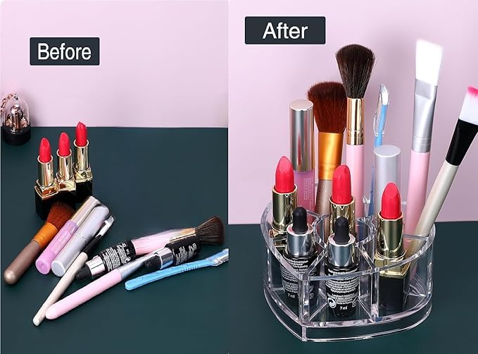 - تتضمن العبوة: 1 قطعة منظم مستحضرات التجميل الاكريليك على شكل قلب 8 فتحات