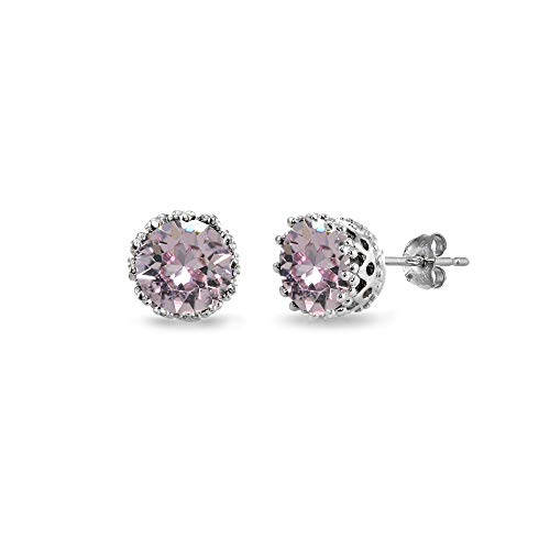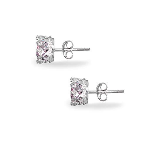 B. BRILLIANT - اقراط من الفضة الاسترلينية المصقولة مقاس 6 ملم بتصميم تاج دائري مصنوعة الكريستال الاوروبي بي. بريليانت للنساء بنات ال اي سي متعدد الالوان