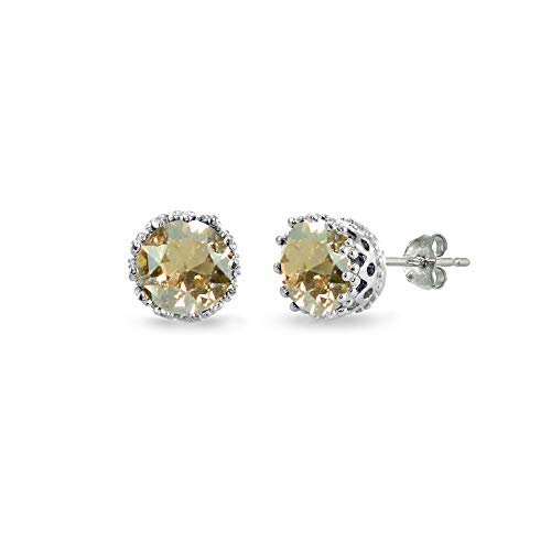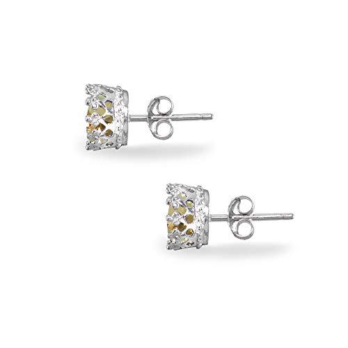 B. BRILLIANT - حلقان مصقولة من الفضة الاسترليني بتصميم دائري على شكل تاج مرصعة باحجار كريستال اوروبي مقاس 6 ملم بي. بريليانت متعدد الألوان للنساء بنات