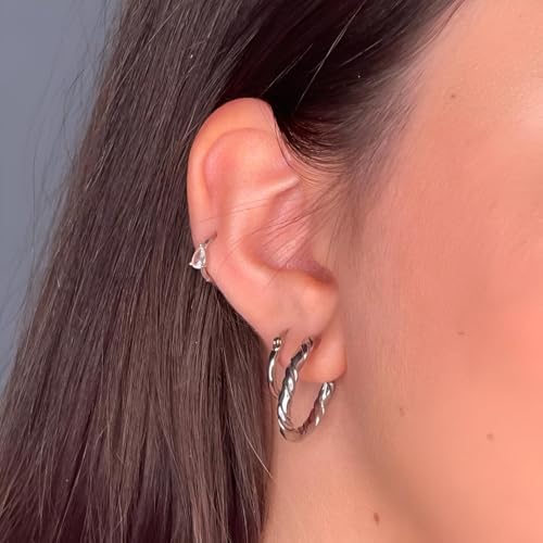 Generic - حلقان من الفضة الاسترلينية - مجموعة حلقان أنيقة من الفضة النقية للارتداء اليومي أو المناسبات الخاصة، مصنوعة من مواد عالية الجودة وتصميم عصري