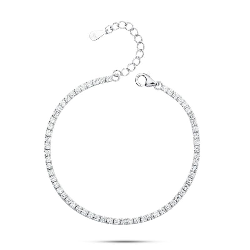 Generic - سوار تنس من الفضة الاسترلينية مرصع بحجر زركونيا مكعب وكريستال شفاف مع سلسلة قابلة للتعديل