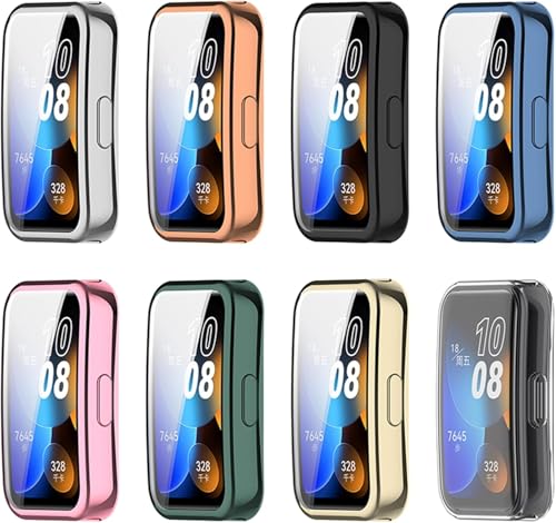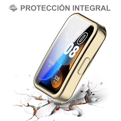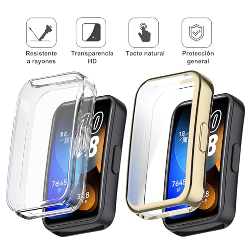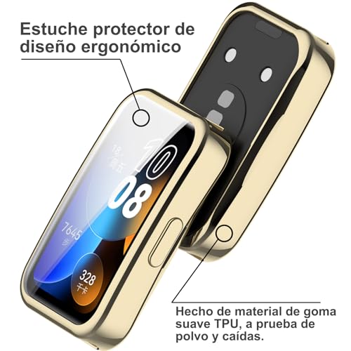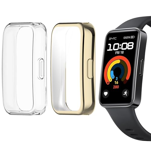 STERT - واقي شاشة من قطعتين من ستيرت متوافق مع هواوي باند 9 وهواوي باند 8، جراب حماية من البولي يوريثين الحراري لهواوي باند 9 وهواوي باند 8 (شفاف + مطلي بالكهرباء بلون ذهبي شفاف)