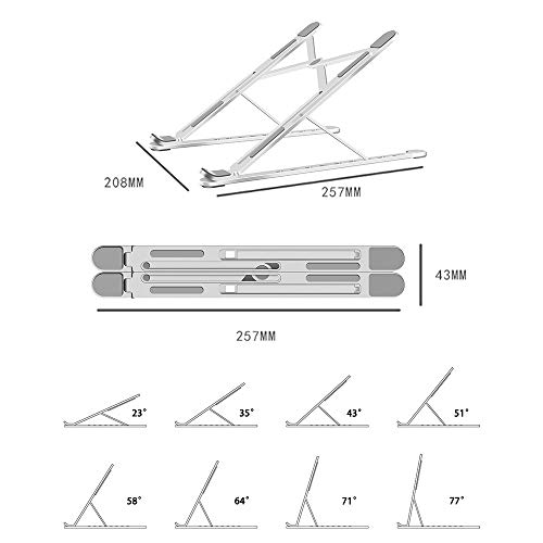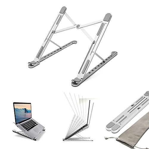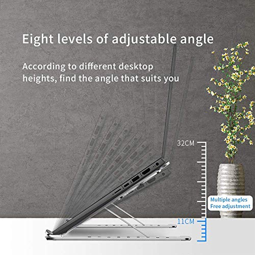 STETEC - حامل لاب توب للمكتب من ستيتك 8 مستويات قابلة للتعديل محمول قابل للطي الألومنيوم خفيف الوزن لتبريد سطح المكتب لمعظم أجهزة اللاب حتى 15.6 بوصة تصميم رفيع ولكن صلب فضي