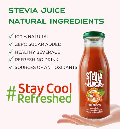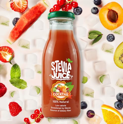 STEVIA JUICE - عصير كوكتيل طبيعي من ستيفيا جوس - عصير طبيعي خالي من السكر محلى بمحلي استيفيا الطبيعي (24 زجاجة - 300 مل)
