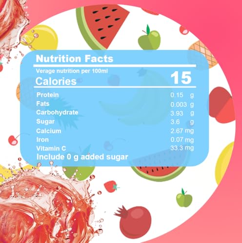 - العناصر الغذائيه لكل 100 مل 15 كالوري - 0.15 جم بروتين - 3.93 جرام كارب - 0.003 جم دهون - 0.07 مجم حديد - 2.67 مجم كالسيوم - 33.3 مجم فيتامين سي - 3.6 جم سكر يحتوى علي 0 جم سكر مضاف