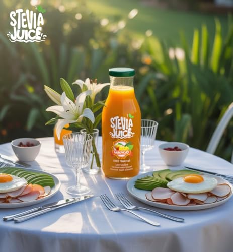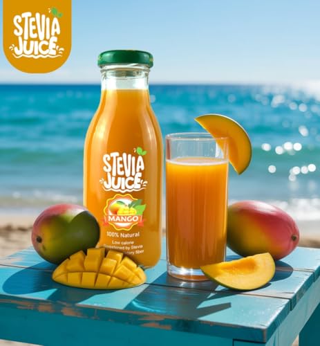 STEVIA JUICE - عصير مانجو طبيعي من ستيفيا جوس - عصير طبيعي خالي من السكر محلى بمحلي استيفيا الطبيعي (24 زجاجة - 300 مل)