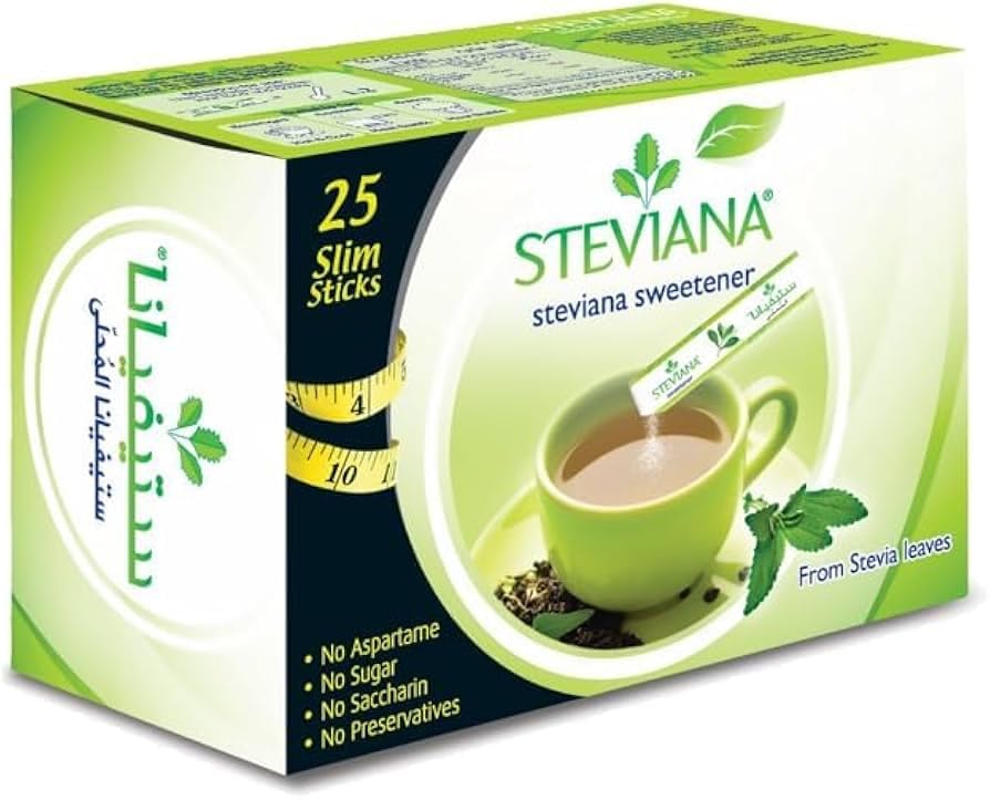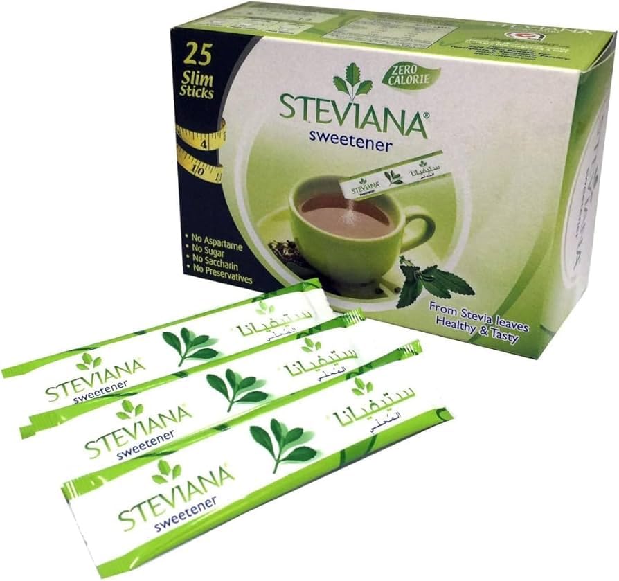 - يحتوي مُحلي ستيفيانا على مستخلص أوراق ستيفيا التي يُعتقد أنها لا تحتوي على سعرات حرارية. يتميز محلى ستيفيانا بمذاق لذيذ ولا يسبب مراره بعد تذوقه.