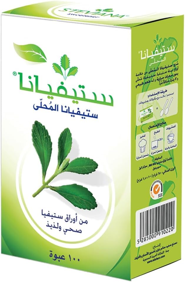 - ستيفيانا (Steviana) هو مُحلي طبيعي ممتاز مستخلص من أوراق نبات الستيفيا، يوفر طعم السكر الأصلي بدون سعرات حرارية، مما يجعله مثاليًا للدايت، الكيتو، ومرضى السكري. العبوة تحتوي على 100 كيس (250 جرام) وتتضمن كوباً مجانياً، بسعر يبلغ حوالي 1440 جنيه مصري في نون. مميزات المنتج: طبيعي 100%: مستخلص من نبات ستيفيا ريبوديانا، غير سام، ومناسب لنمط الحياة الصحي. خالي من السعرات: بديل آمن للسكر لا يسبب زيادة في الوزن. استخدامات متعددة: مثالي لتحلية المشروبات الساخنة والباردة. محتوى العبوة: 100 كيس، بوزن إجمالي 250 جرام، مع كوب مجاني