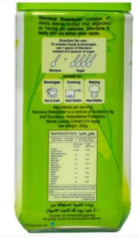 Generic - مُحلي ستيفيانا، بديل للسكر مُستخلص من أوراق ستيفيا، 200 غرام