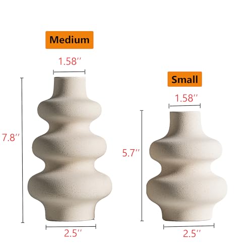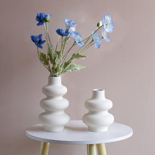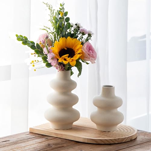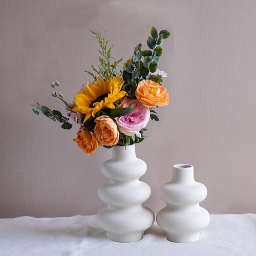Steviieden - فازة سيراميك من ستيفيدن، مجموعة من قطعتين، فازة عصرية لغرفة الطعام والمعيشة وطاولة عشاء الزفاف وديكورات المنزل، فازة دائرية بلون اوف وايت، فازة بوهو للديكور