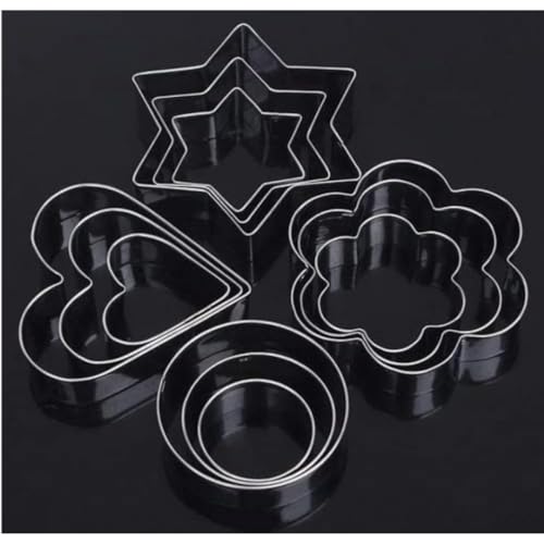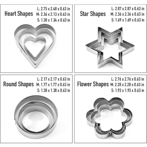 Sthavar - قطاعات كوكيز صغيرة قطعة بأشكال قلب وزهرة ونجمة ودائرة قوالب معدنية للخبز من الفولاذ المقاوم للصدأ للفواكه والخضروات من ستافار، مجموعة من 12 قطعة