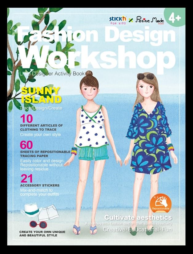 Stick'n - كتاب أنشطة بتصميم جزيرة صني ايلاند للبنات من هوباكس ستيك ان 29043، متعدد الألوان