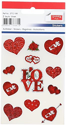 TANEX - ستيكر ملصقات من تانيكس قلوب 2 ورقه متعدد الالوان موديل STC-188