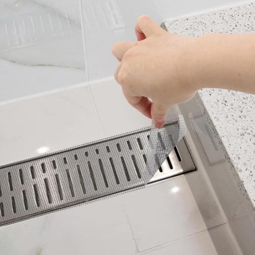 - ملصقات شبكية ذاتية اللصق لالتقاط الشعر ملصق فلتر مضاد للانسداد، غطاء محول تصريف مياه الدش لالتقاط الشعر- 7 سم × 5 متر