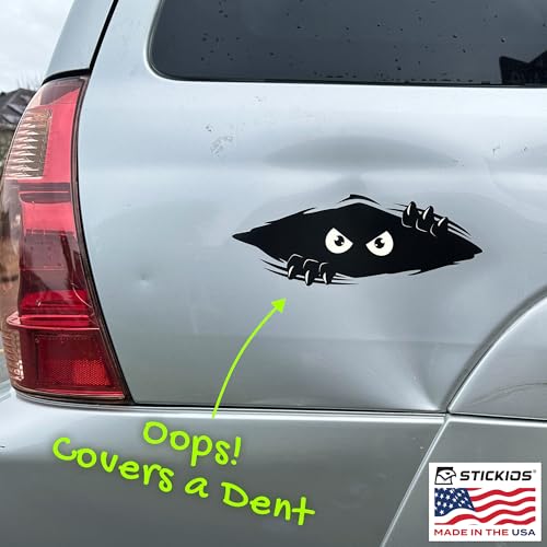 Stickios - ملصقات سيارة من ستيكوس- ملصق وحش مضحك للسيارات والشاحنات والانبعاجات والسيارات الرياضية- ملصق كبير أسود من الفينيل للاكصدام مصنوع في الولايات المتحدة الأمريكية - شريدر (مقاس 28 سم × 11 سم)