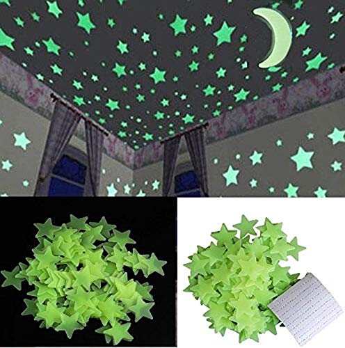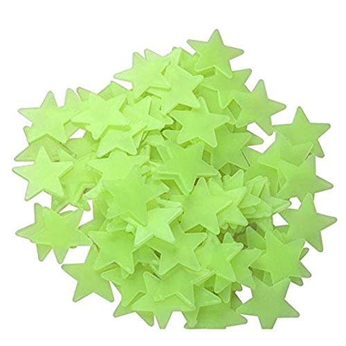 Stickonn - ستيكون ملصق حائط على شكل نجمة تتوهج في الظلام (اخضر، 3 × 3 سم، 50 نجمة مع قمر واحد)