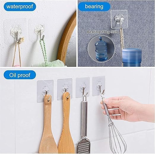 Generic - خطاف حائط لاصق - خطاف ذاتي اللصق شديد التحمل مقاوم للماء والزيت خطاف شفاف للحمام وغرفة الاستحمام والمطبخ (قطعتان - شفاف)