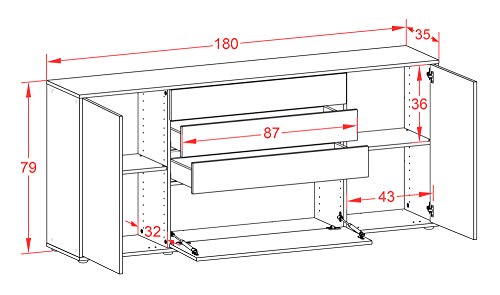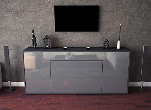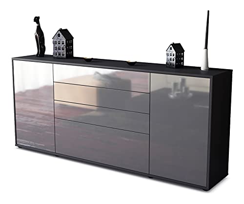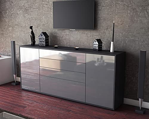 Stil.Zeit - خزانة جانبية كومود من ستيل.زيت - الارد - كوربوس انثرازيت مات - تصميم جرافيت امامي - (180 × 79 × 35 سم) - تقنية الدفع للفتح والإضاءة - صنع في المانيا، بلاستيك