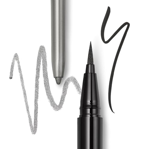 - مجموعة مزدوجة تحتوي على بطانة فضية كاملة الحجم 0.35 غرام، قلم تحديد عيون جل يدوم طوال اليوم وقلم تحديد العين السائل الأصلي انتنس بلاك ستاي اول داي بحجم كامل 0.5 مل.