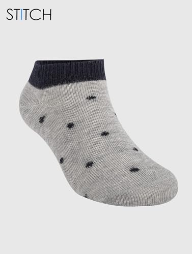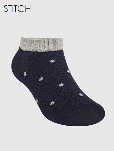 STITCH - ستيتش شرابات ليكرا كاجوال منقطة للكاحل للبنات من 9 قطع - كحلي - كشمير - رمادي - مقاس 30-33 EU