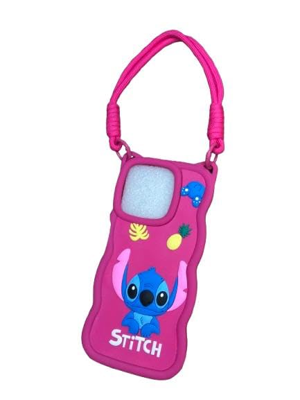 - ميزات التصميم: جراب سيليكون بتصميم شخصية ستيتش لطيف باللون الوردي مع عناصر زخرفية وبطانة واقية