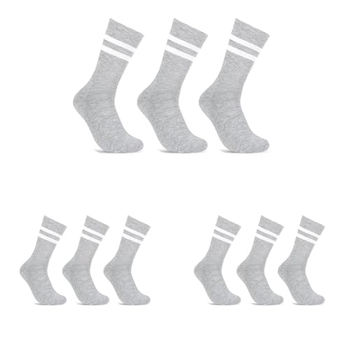 STITCH - شرابات نصف تيري طويلة مخططة للجنسين من ستيتش، 9 قطع، رمادي فاتح مع خطوط بيضاء
