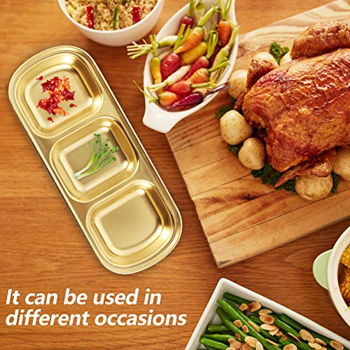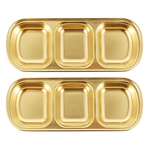 STOBAZA - بولات غمس من الفولاذ المقاوم للصدأ، طبق صلصلة الصويا مقسم إلى 3 أقسام لتقديم المقبلات، أواني تقديم توابل الشواء والكاتشب للمنزل والمطعم من ستوبازا، لون ذهبي، 2 قطعة