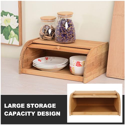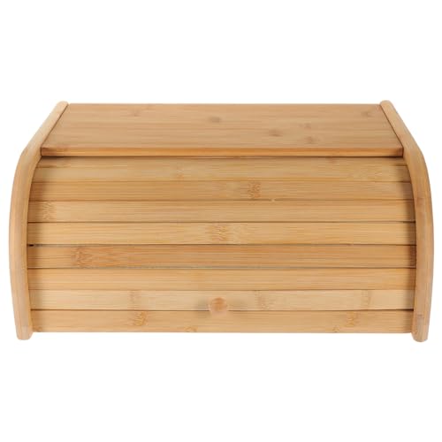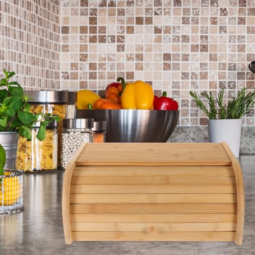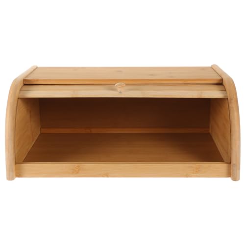 STOBOK - صندوق خشبي لتخزين الخبز من الأعلى، حاوية تخزين الخبز، منظم طاولة المطبخ لمستلزمات سطح المطبخ، بني، 41 × 27 × 16.5 سم، صندوق خبز خشبي من ستوبوك