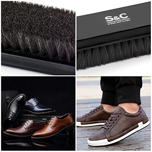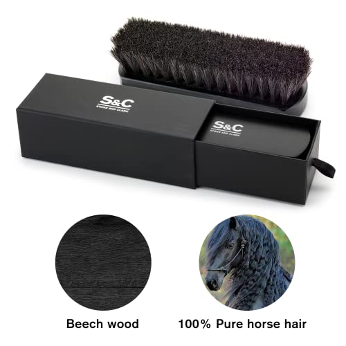 Stone and Clark - فرشاة أحذية من شعر الخيل، لتلميع الجلد بشكل مثالي، فرشاة تلميع أحذية بشعيرات 100% من شعر الخيل ومقبض خشبي مقعر من خشب الزان من ستون اند كلارك (فرشاة شعر الحصان بلون أسود)