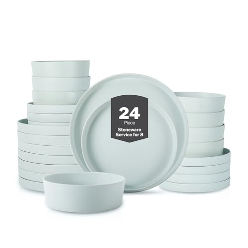 STONE BY MERCER PROJECT - طقم أدوات مائدة مودان من الخزف الحجري، 24 قطعة تكفي لخدمة 8 أشخاص، أزرق ورمادي من ستون باي ميرسر بروجيكت