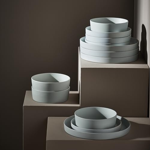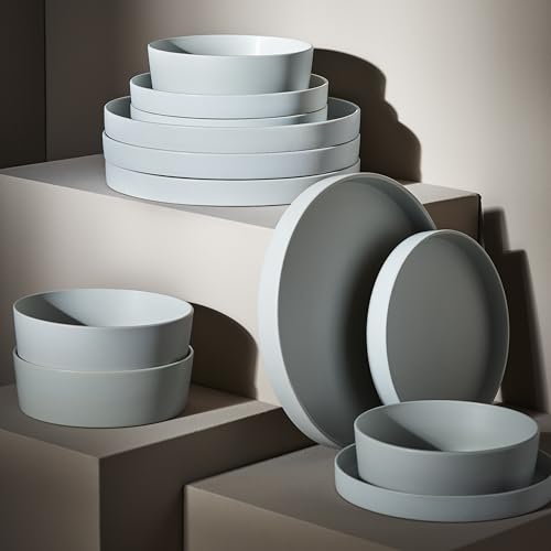 - [خدمة لـ 8] - تتضمن مجموعة أدوات المائدة الحجرية هذه من مودان 8 أطباق عشاء عالية الحواف (10.6 انش)، 8 أطباق سلطة عالية الحواف (8.25 انش)، و8 أوعية (6.75 انش)، مما يوفر حلاً كاملاً لتناول الطعام لأربعة أشخاص.