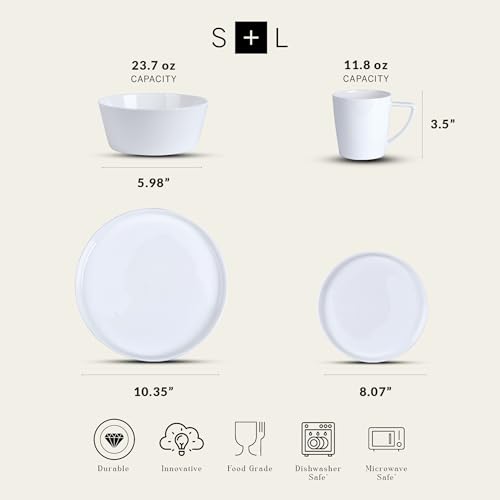 Stone Lain - طقم عشاء رسمي مادلين من الخزف الصيني يكفي 8 أشخاص من ستون ليان، 32 قطعة، أبيض