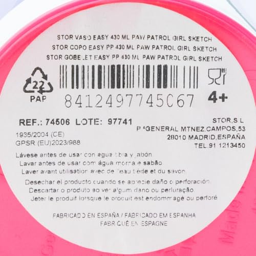 Stor - كوب سكيتش إيسنس كبير سهل الاستخدام ومزين بنمط شخصيات الرسوم المتحركة باو باترول للبنات من ستور، بلاستيك