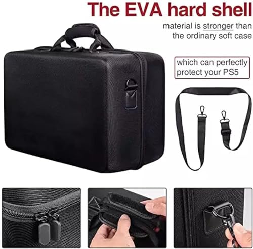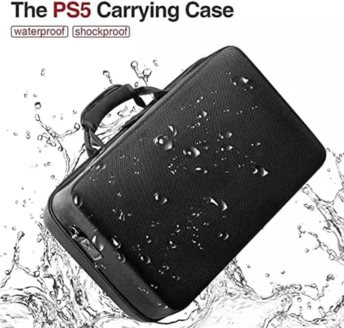 CENXI - شنطة تخزين لجهاز بلاي ستيشن 5 بهيكل صلب مقاوم للصدمات - شنطة كتف فاخرة مقاومة للماء لجهاز بلاي ستيشن 5، منظم تخزين وحدة التحكم والاكسسوارات، لون اسود